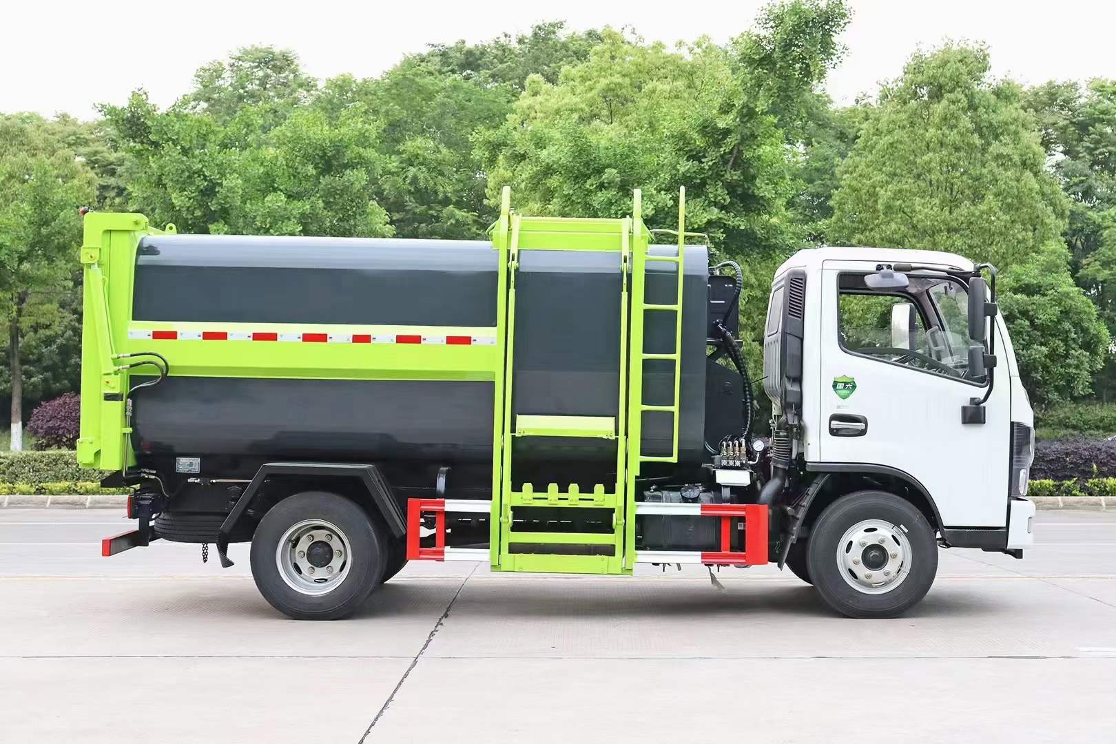 (2)壓縮比高、裝載量大:箱體容積約7立方米,裝載量相當于同噸級排非壓縮垃圾的兩倍半。