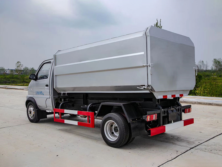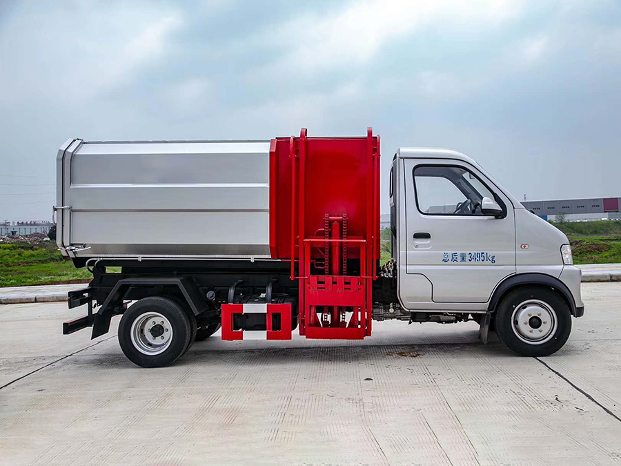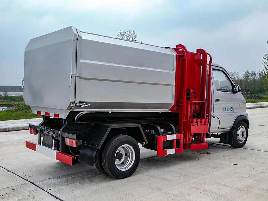 自動舉升垃圾桶倒入垃圾,提升機頂部帶機械翻蓋,箱體底部雙液壓舉升自卸,箱體后部設(shè)有擋水槽,尾部裝有橡膠密封條,防污水滴漏。 |