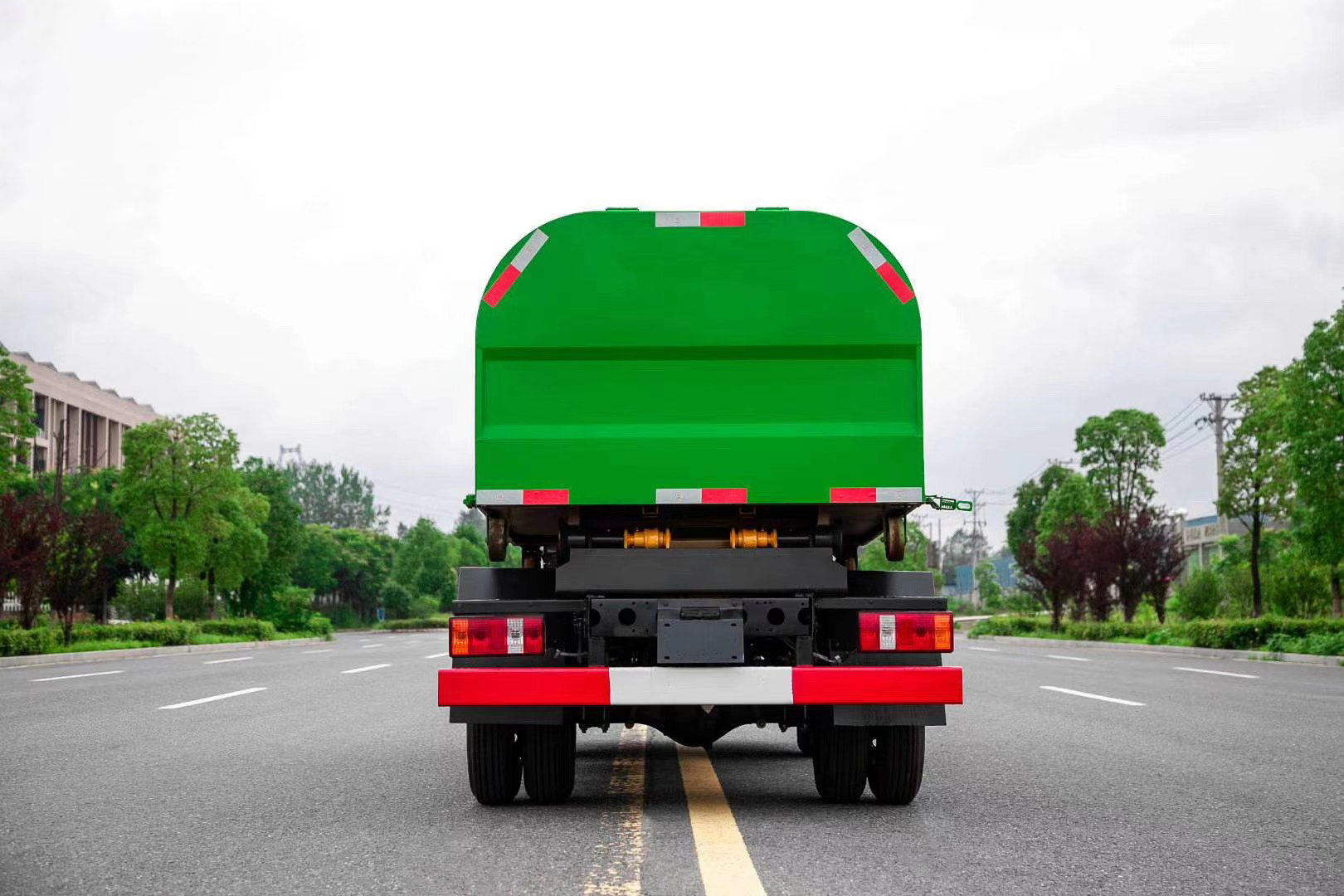 選裝前圍,前柵欄,前LOGO;隨底盤選裝駕駛室,選裝車輛外觀結構樣式.該車用于垃圾的收集清運,主要專用裝置為勾臂;側后防護材料均為Q235,側防護為螺栓連接,后防護為焊接連接;后部防護斷面尺寸(mm):100×50,離地高度350mm;發動機型號/油耗(L/100km)對應關系:Q23-95C60/11.5,Q23-95E60/11.5;ABS系統控制方式為4通道四傳感器,ABS型號為CM4YL,生產廠家為廣州瑞立科密汽車電子股份有限公司.