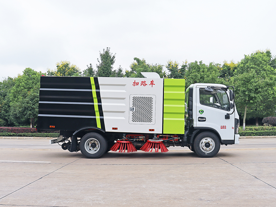 4個中置掃盤,帶3檔調速;江鈴副發動機;大力馬達;施耐德控件開關;臺灣電磁閥組;免維護自分離式離合器;北玻臺信免維護風機;不銹鋼水箱;不銹鋼垃圾箱;尾部LED箭頭燈;手動泵應急系統;刷臂轉動機構使用高新耐磨工程隔套,免打黃油;精密冷彎無縫液壓油管。